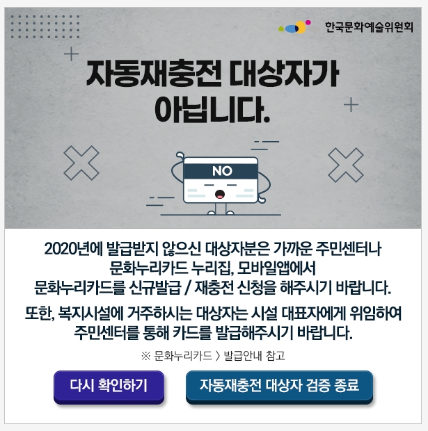 * 지속적으로 자격유지를 했으나, 2020년도 문화누리카드 미발급자.