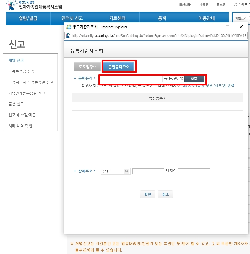 등록기준지 같은 경우는 예전에 도로명 주소 생기기 전 주소가 대부분이라서