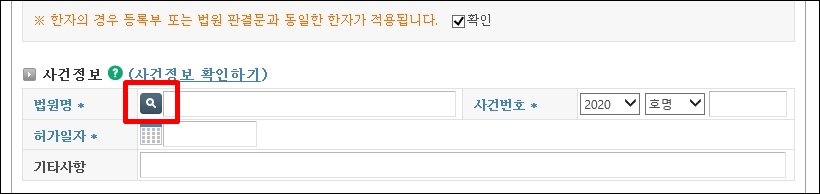 사건번호, 허가일자도 결정문에 적힌 날짜 보고 그대로 적으시면 되요.
