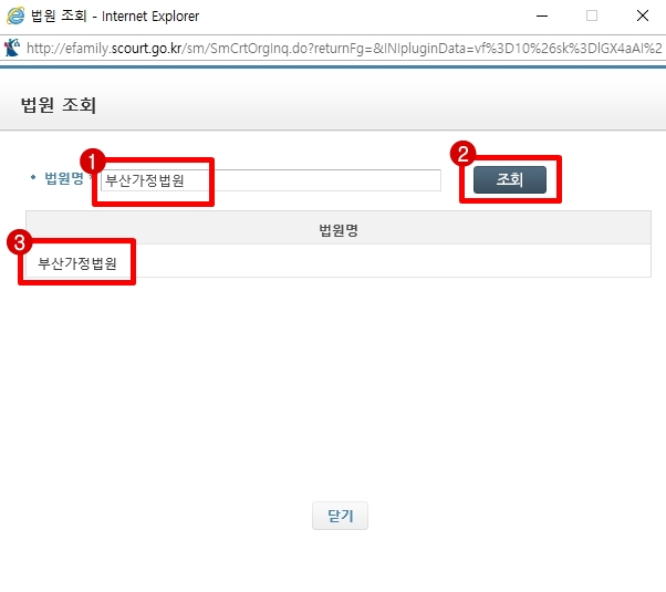 저 같으면 부산가정법원 쓰고 조회 누르면 되는거죠.