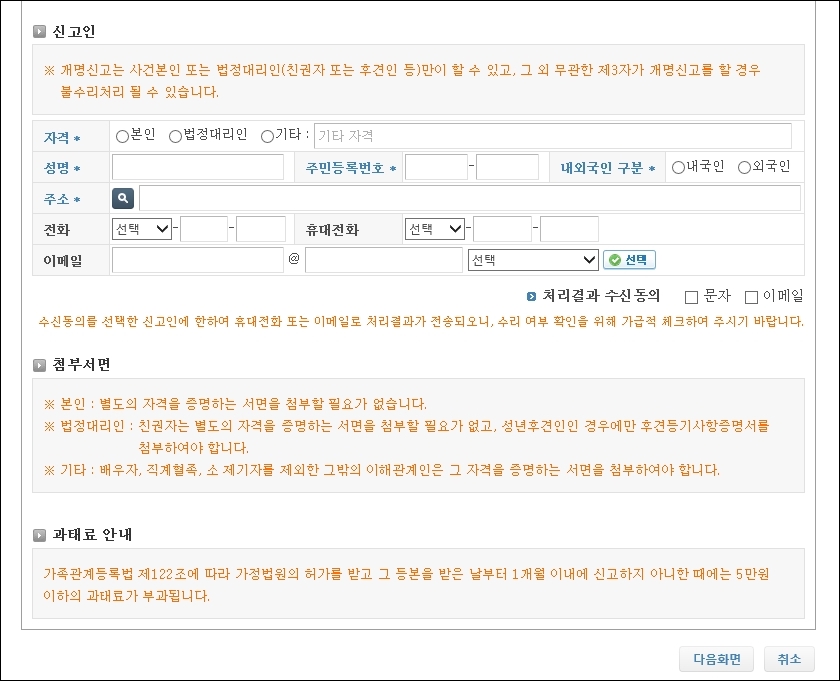 셀프 개명, 인터넷 개명신청방법 (필요 서류 포함)