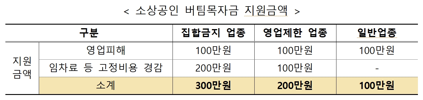 집합금지 업종은 300만원