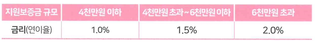 * 단, 수도권(60만원), 광역시(45만원), 기타지역(40만원) 한도의 보증부월세는 입주자가 원할 경우 3개월치 월세에 해당하는 금액만 입주자가 부담하고 9개월치 월세는 임차료 지급보증(임차인이 임대인에게 임차료(월세)를 지급하지 못할 경우 이를 책임지는 보증상품)으로 대체가능.