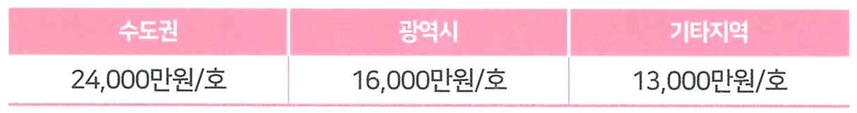 * 지역별 지원한도액을 초과하는 주택은 초과하는 전세금액을 입주대상자가 부담하고 임차권은 LH에 귀속되는 조건으로 지원가능하며, 전세금 총액은 호당 지원한도액의 250% 이내로 제한함.