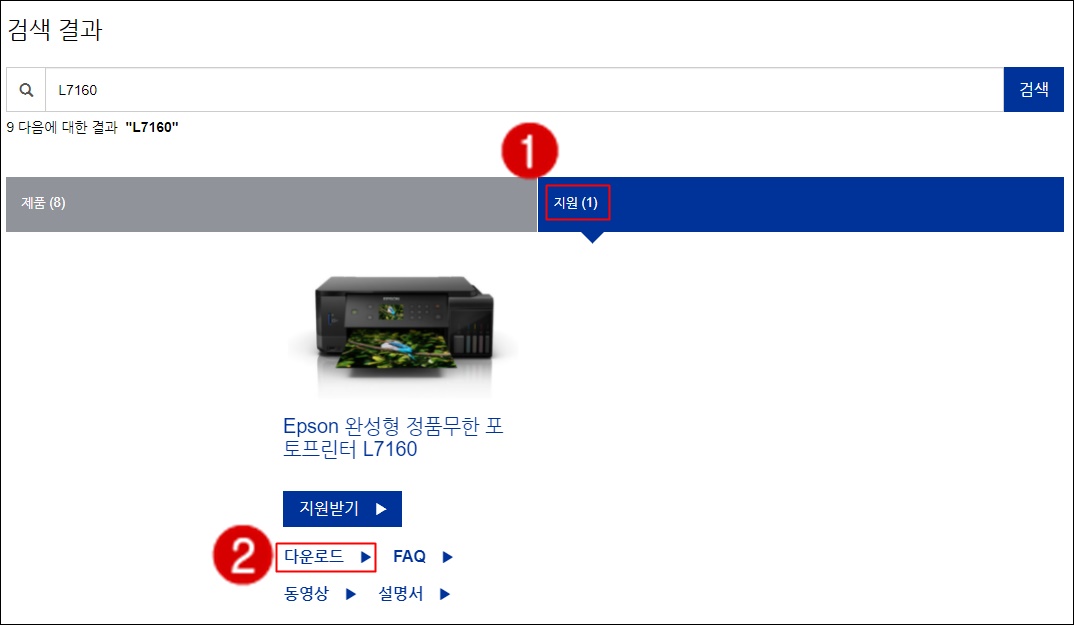 그거 말고 "지원"이라고 써있는거 누르면 해당 모델 프린터가 딱 나와요.