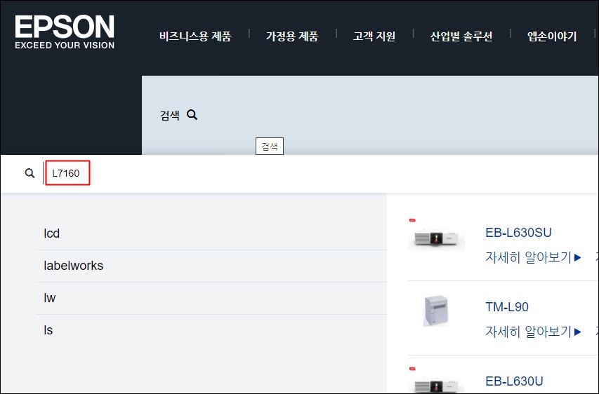 저희 집 프린터도 앞에 잉크쪽에 L7160이라고 써있네요. 저게 모델명입니다.
