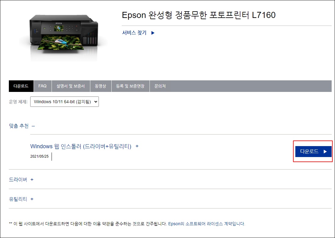 이런건 밑에 드라이버+라는 부분을 누르면 똑같이 [다운로드]버튼이 있습니다.