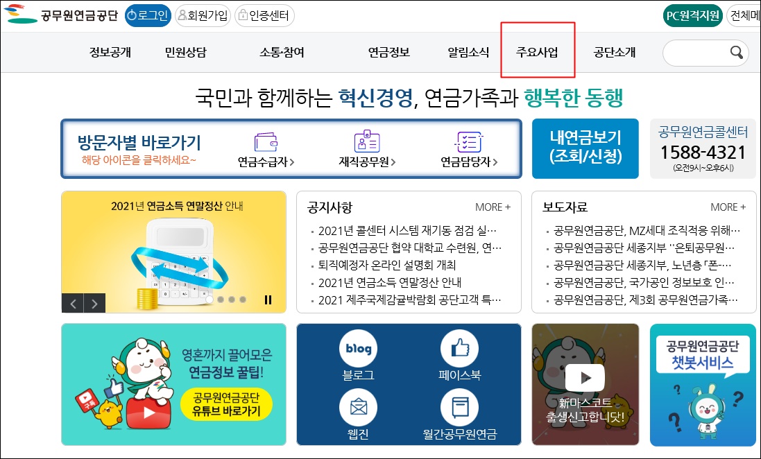 공무원연금공단 사이트 들어가보시면 메뉴에 "주요사업"이 있습니다.