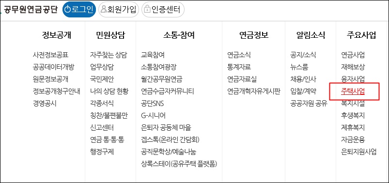 (그니까 공무원연금공단->주요사업 밑에 주택사업 메뉴 누름)