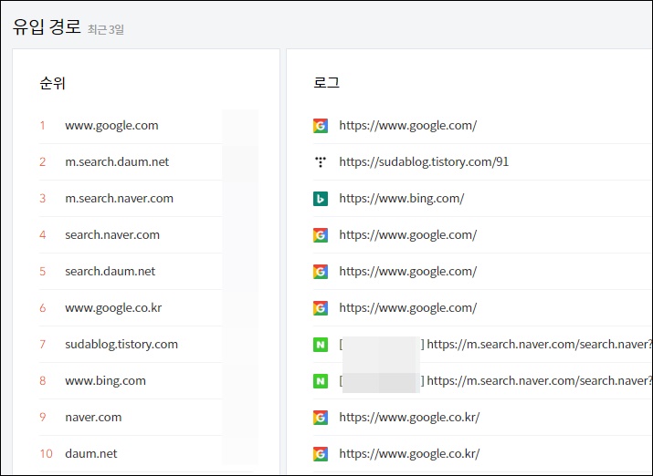 지금 제 티스토리 블로그에 구글에서 들어오는게 많은게 좋은건지 아닌지 그걸 모르겠네요.