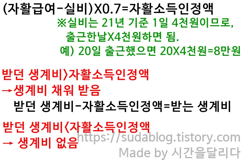 (예는 그냥 보기 쉬우시라고 적은 숫자라 실제 생계수급비나 자활 급여는 아닙니다.