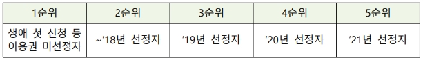 1순위 : 생애 첫 신청 등 이용권 미선정자.