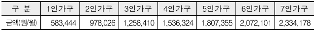 ※8인 이상 가구는 1인 증가시마다 262,076원씩 증가 됩니다.