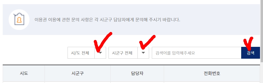 내 지역 담당자 찾는 방법은 위의 스포츠바우처 홈피에 들어가서 지역 선택하시고 [검색] 누르면되요.