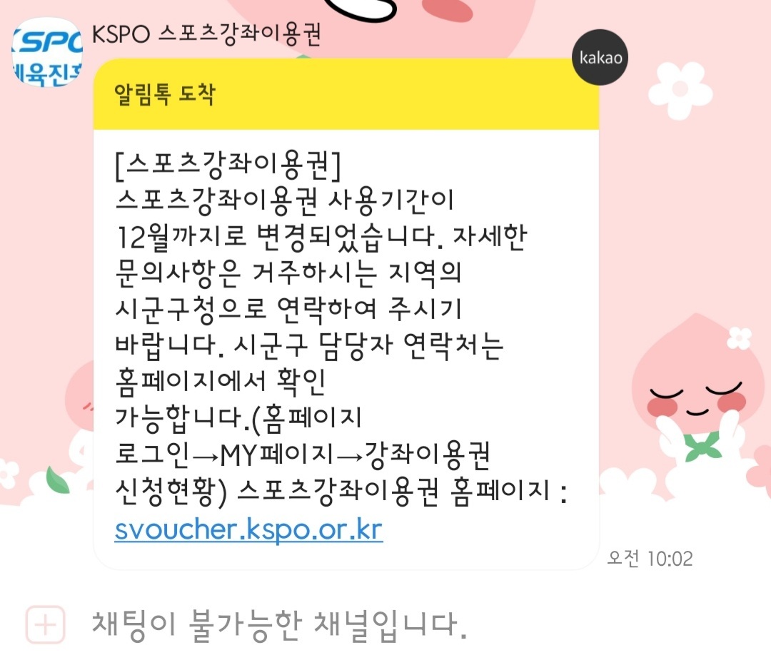 저는 올해 3월부터 12월까지 스포츠바우처 이용하겠네요.