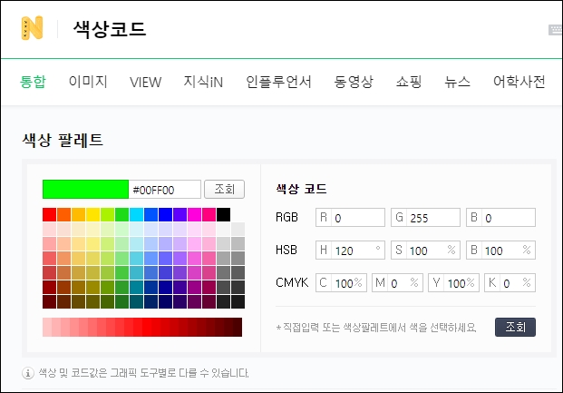 코드로 조회도 가능하고 색깔 선택으로도 코드를 알아내기 제일 쉬운 방법은 네이버에서 색상코드라고 검색하는거에요.