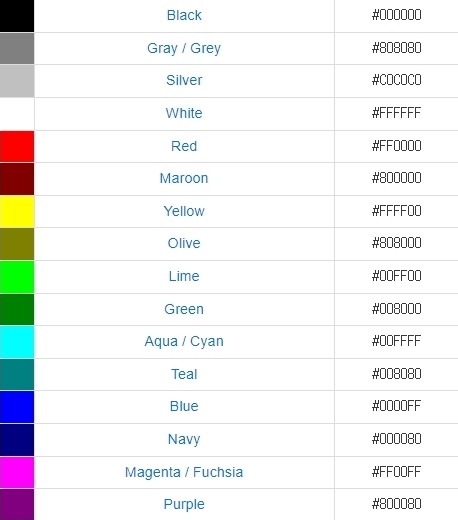 html에서 색상코드로 넣기도하고 영어로된 색상명을 넣기도 하잖아요?