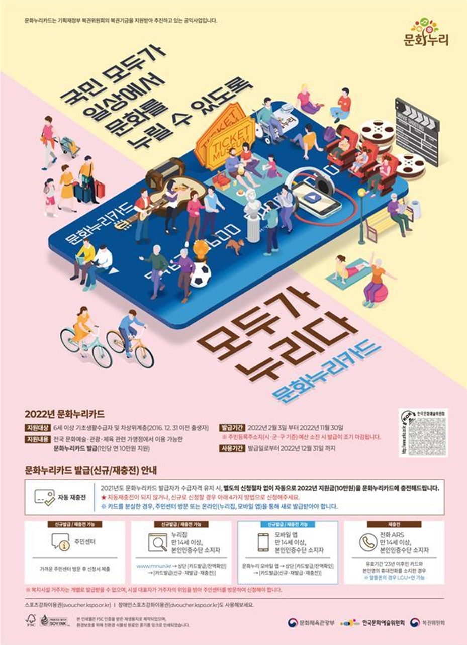 설 연휴 지나고 2월 3일부터 문화누리카드 사용도 되고