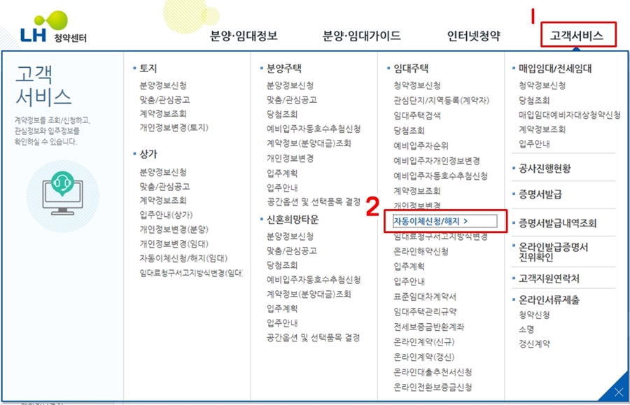 LH 월세(임대료) 자동이체신청/해지 유의사항