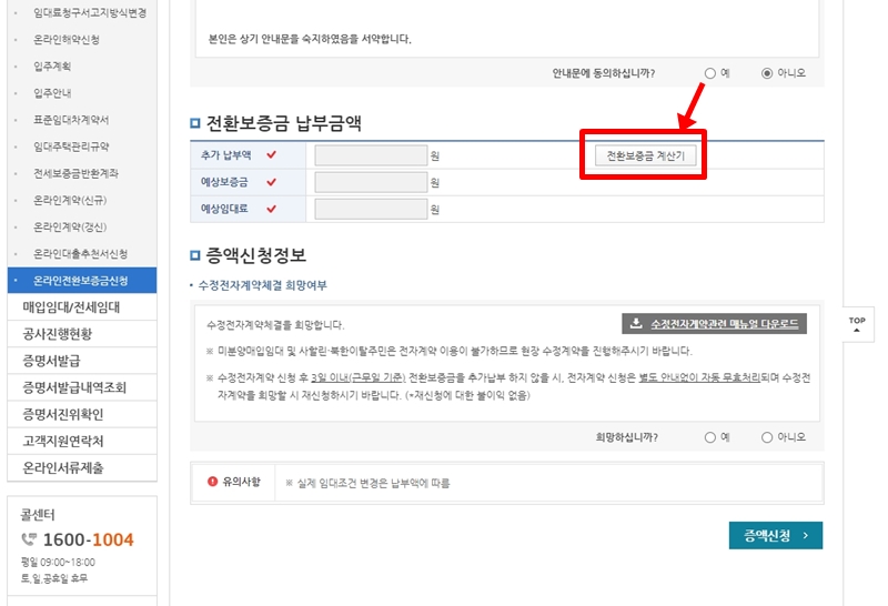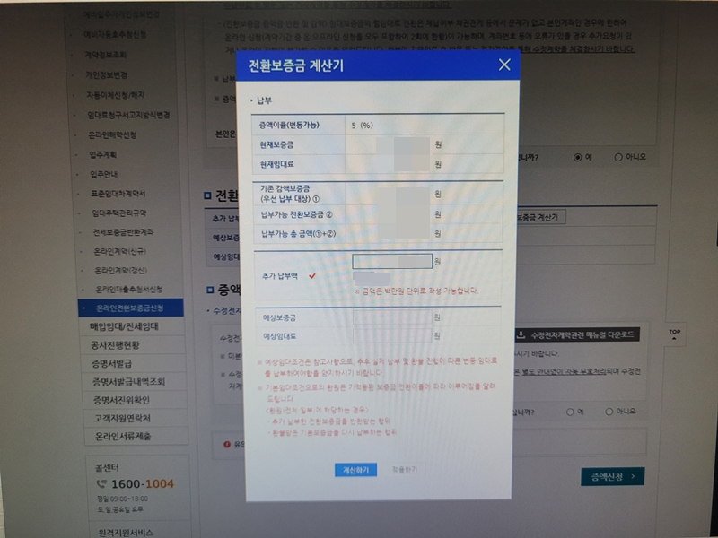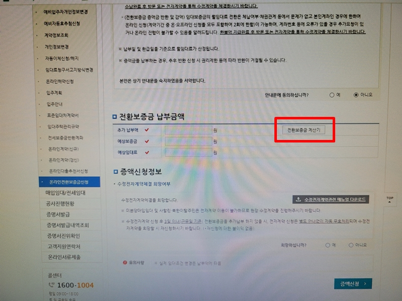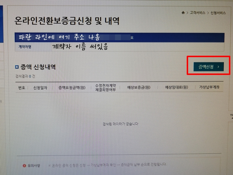 바로 온라인으로 증액 신청하는것은 입주 하고 살다가 증액 신청 하는 경우입니다.