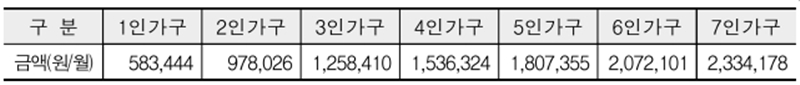 그러니까 조건불이행하는 가구원의 생계비를 제외한 나머지 가구원의 생계비만 나오게됩니다.