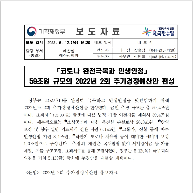 | 2차 추경 내용 (소상공인, 저소득층, 특고.프리랜서, 택시.버스기사, 문화예술인 지원금) (7) | 2022.05.23 |