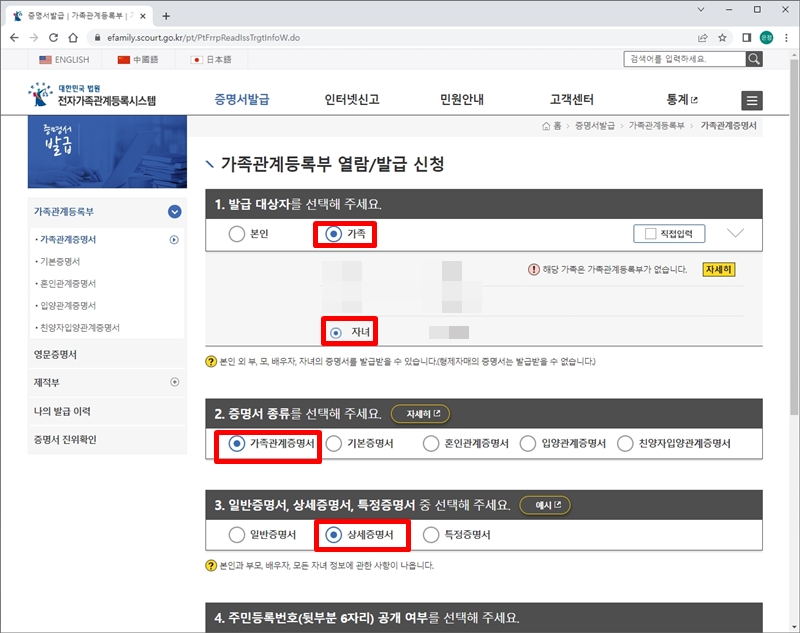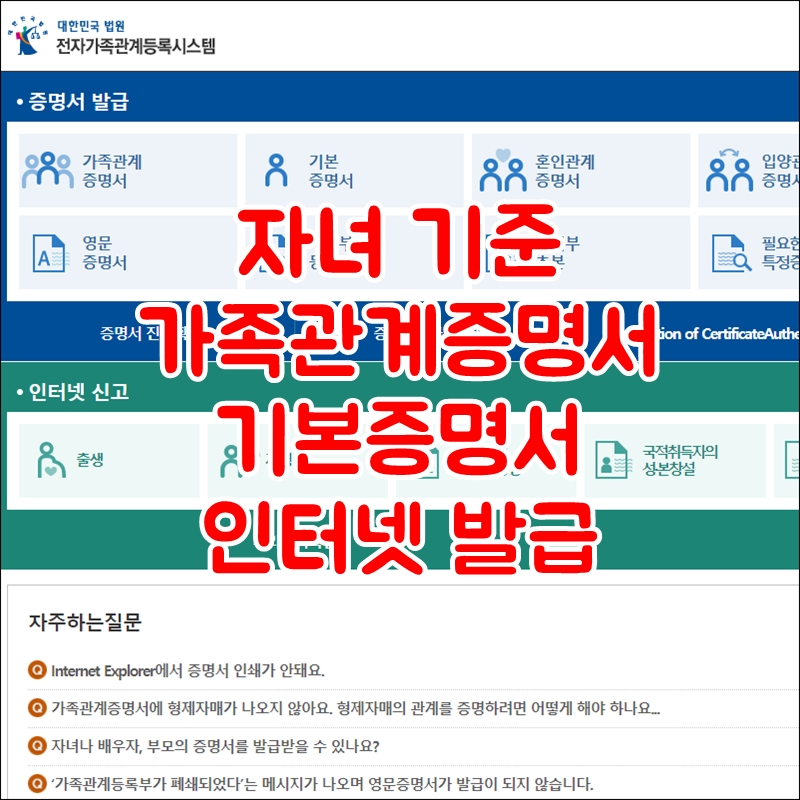 자녀 가족관계증명서 기본증명서 인터넷발급 방법(미성년자녀)