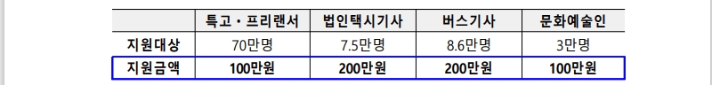 특고.프리랜서, 법인택시.버스기사, 문화예술인에 대한 지원금은