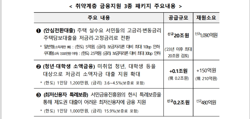 ㅇ (금융지원) 저소득 서민, 청년·대학생 등 취약계층을 대상으로