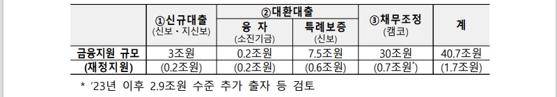 10조원 수준의 채무조정(원금·이자 포함) 추진(신규 0.7조원)