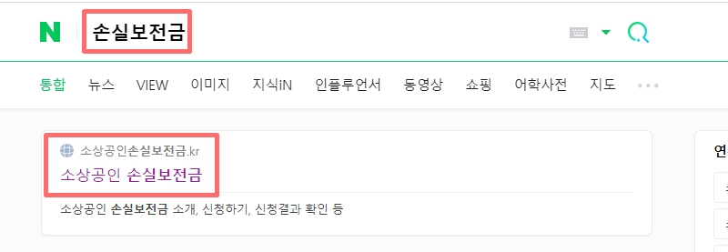 또는 네이버나 다음(Daum)에서 검색창에 소상공인 손실보전금이나 손실보전금 등을 검색하여 접속하셔도 됩니다.