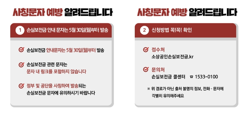 손실보전금 사칭 문자를 주의하세요!