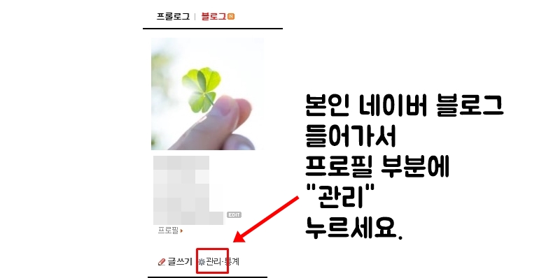 본인 네이버 블로그에서 "관리"에 들어갑니다.