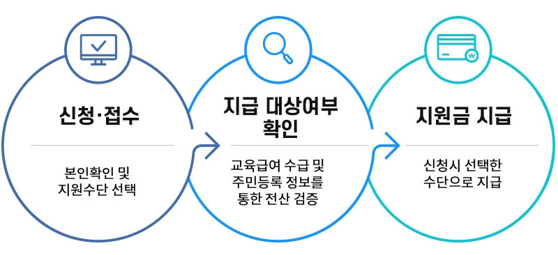 신청 및 접수 → 지급 대상여부 확인 → 지원금 지급