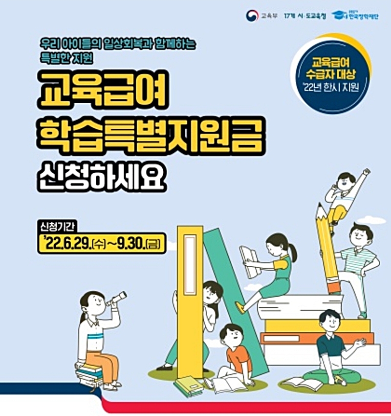 교육부와 17개 시·도 교육청, 한국장학재단은 코로나19로 인한 학습결손 및 격차 완화를 위해 교육급여 수급자를 대상으로 교재 구매, EBS 콘텐츠를 이용할 수 잇는 학습보조금을 지원합니다.