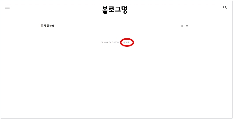 내 블로그 보기로 왔다면 아래 동그라미한 위치에 "관리자"라고 써있는거 누르시면 관리 페이지로 갑니다.