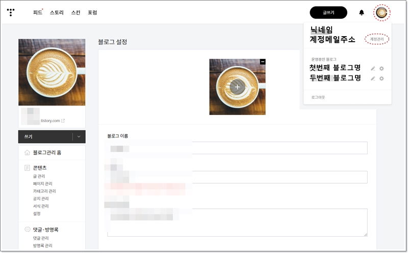 티스토리는 블로그를 한 계정에 5개까지 동시 운영할 수 있고