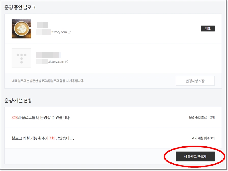 지금 2개의 티스토리 블로그를 만들어놔서 3개 더 운영할 수 있다는 말이구요,