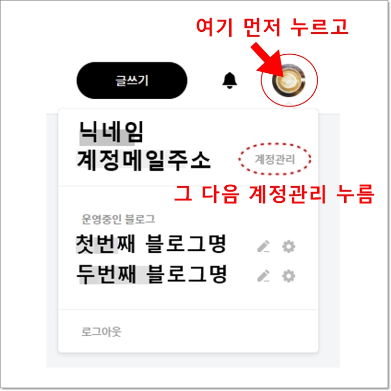 그 메뉴창에 "계정관리"라고 적힌걸 눌러주세요.