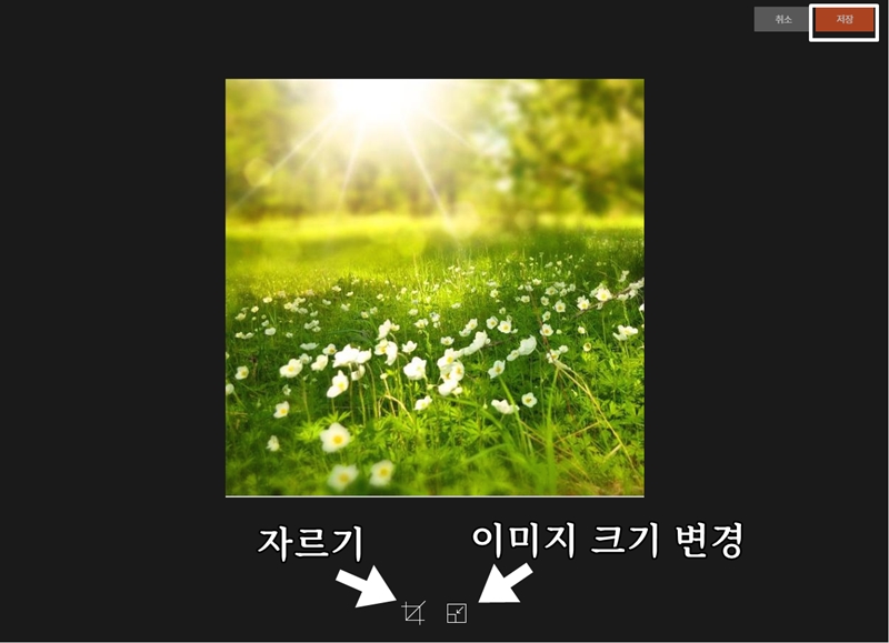 (사진 등록때 아래 보면 자르기랑 이미지 크기 변경하는 아이콘 2개 있습니다)