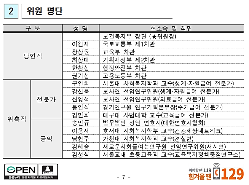 그 동안은 항상 '보건복지부 장관(이름)' 이렇게 시작되었는데 이번엔 없어서 중앙생활보장위원회의 위원 명단에 보니 보건복지부 장관 이름이 빈칸으로 되어있네요.