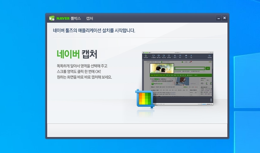 [확인] 누르면 설치창은 닫기고 네이버 캡쳐 프로그램이 열립니다.