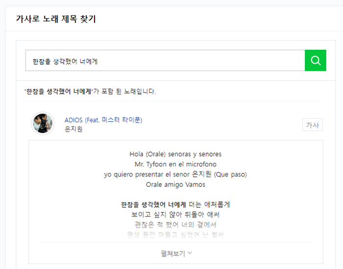 그냥 이렇게 생각나는 노래 가사를 바로 검색창에 가사만 넣지말고